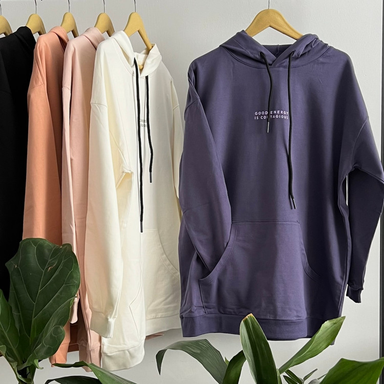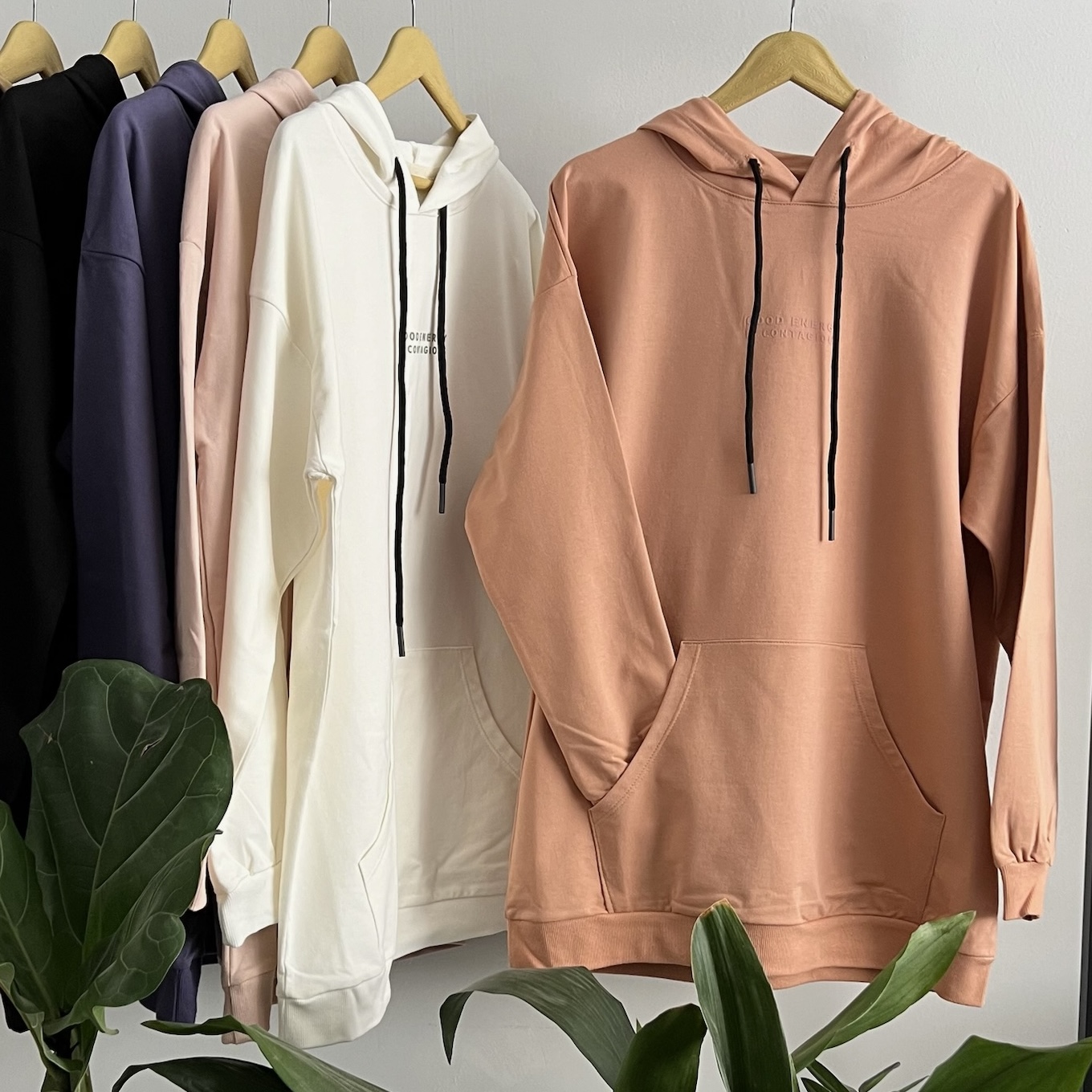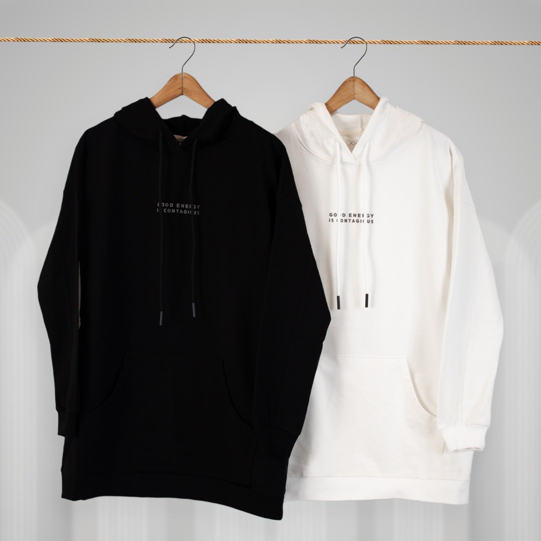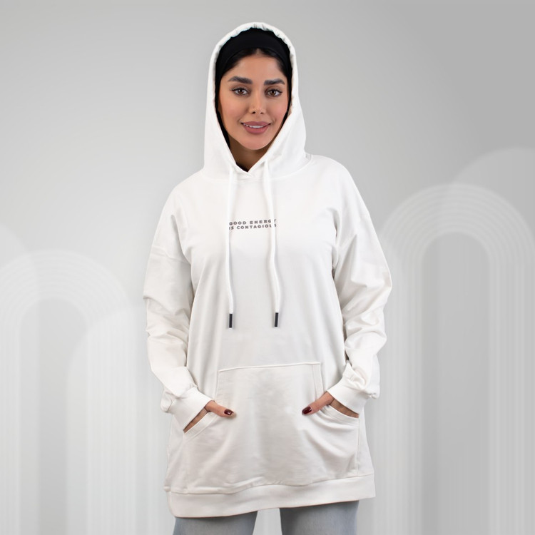 هودی زنانه بلند مدل چاپ مینیمال برند هلکا کد ۱۰۷۲۸