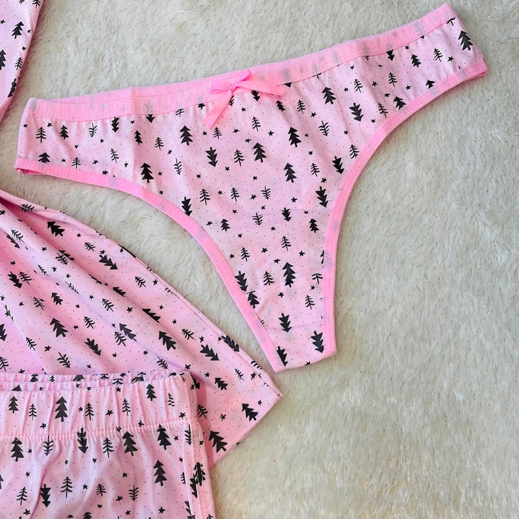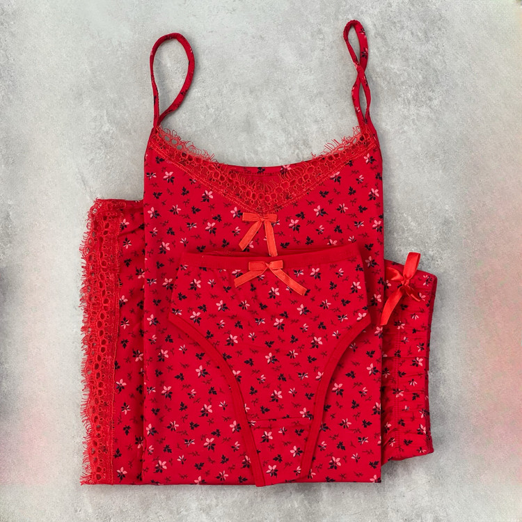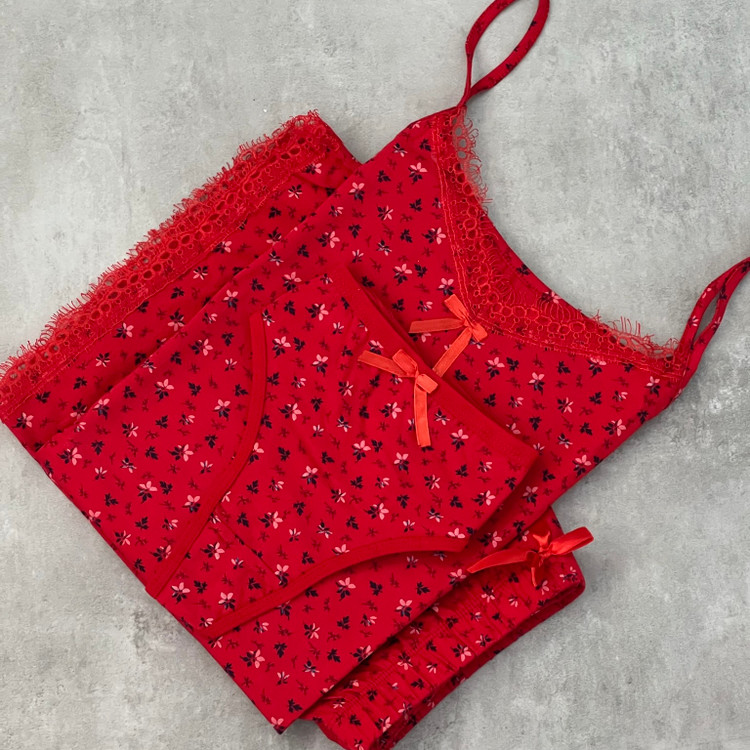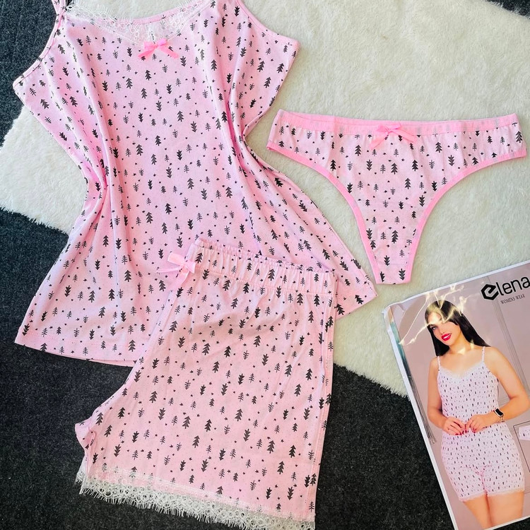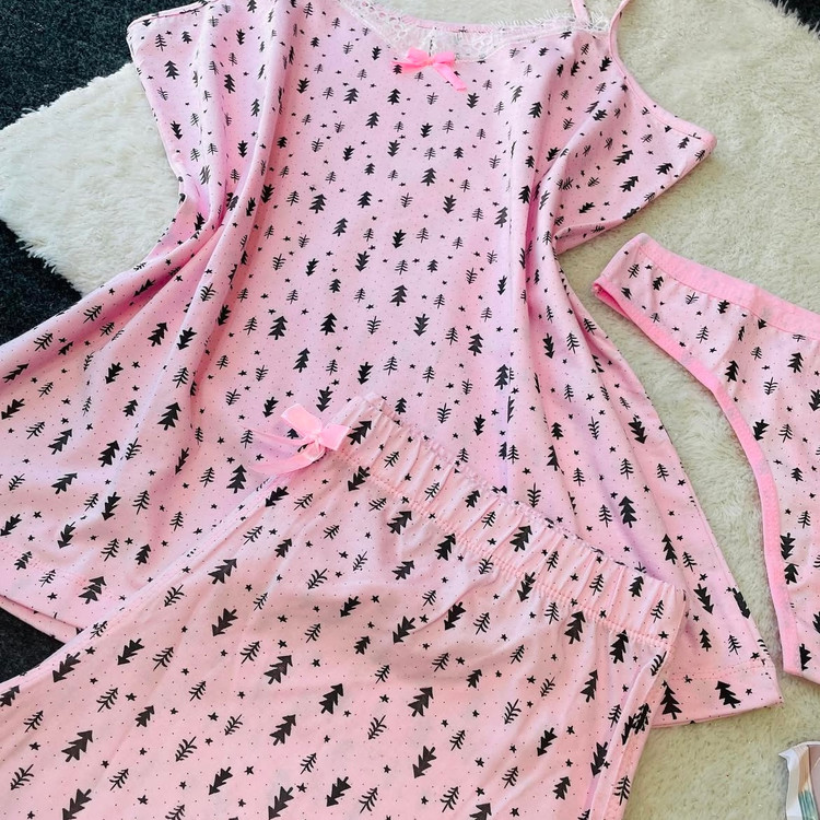 لباس راحتی سه تیکه پنبه لاکرا زنانه