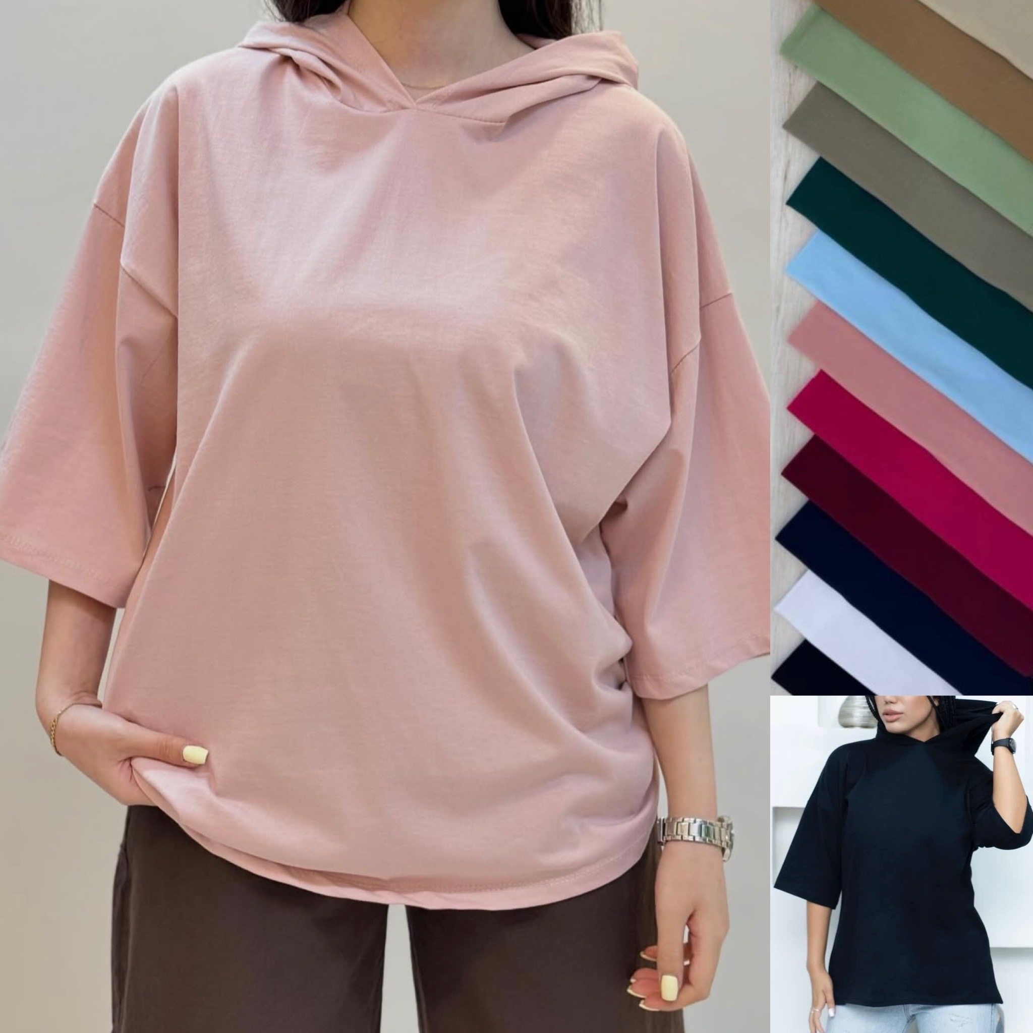 تیشرت باکسی کلاهدار زنانه کد ۱۰۷۷۹