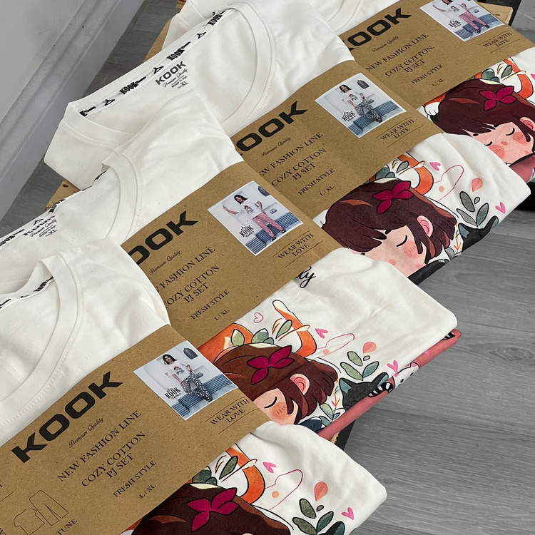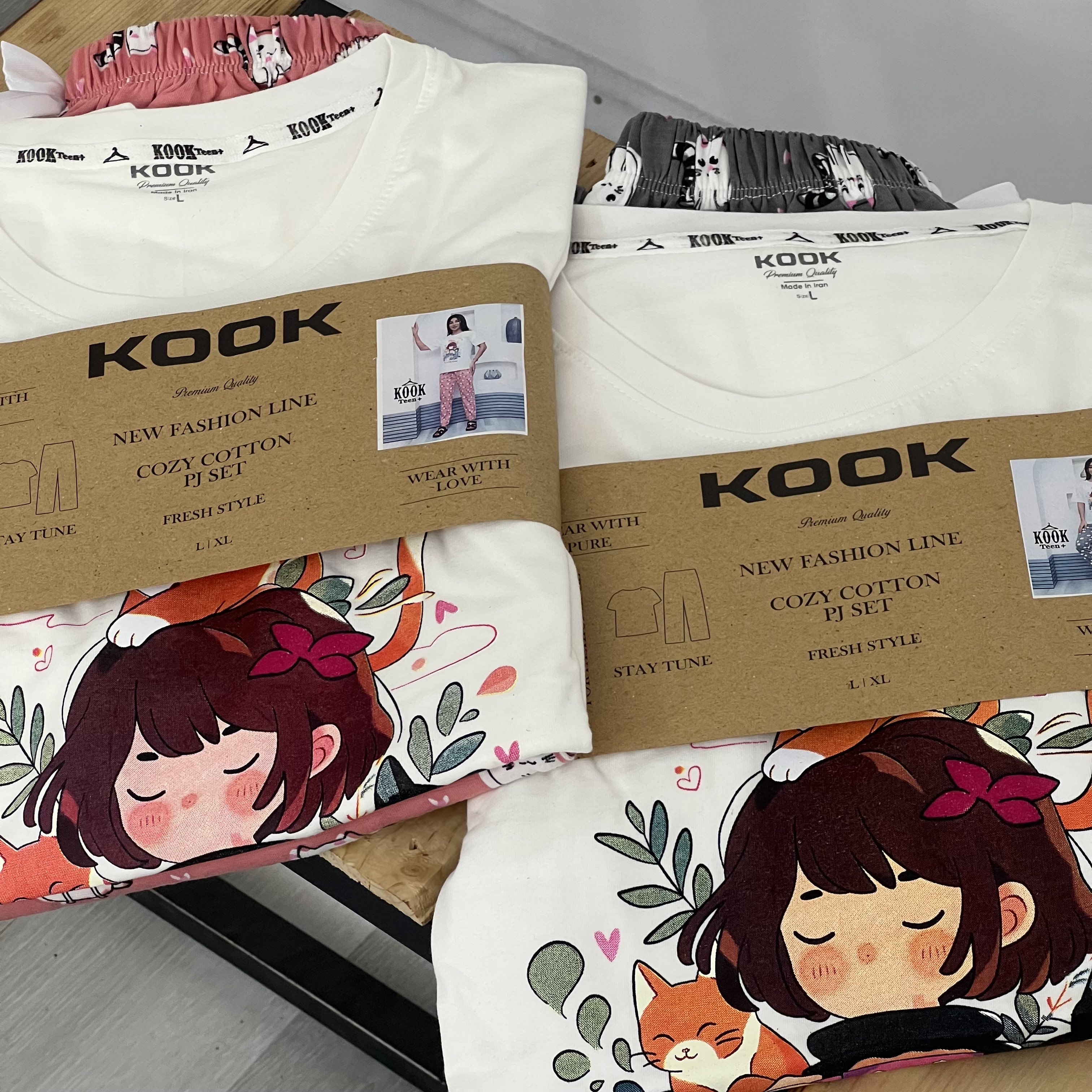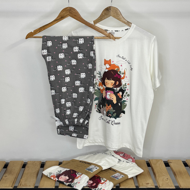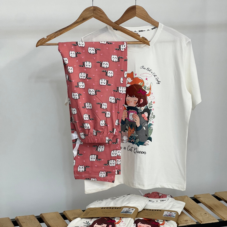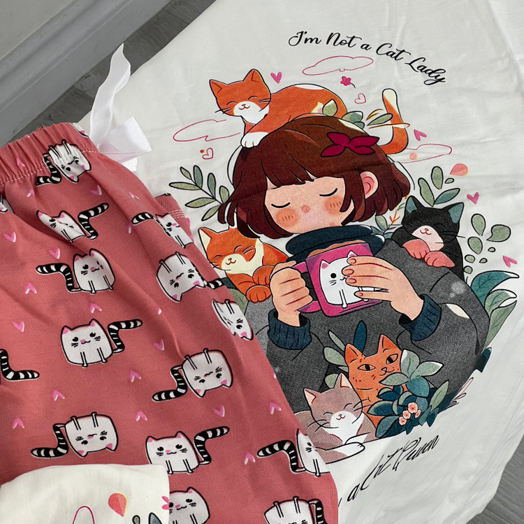 ست تیشرت و شلوار راحتی زنانه ‌طرح دختر گربه‌ای کد ۱۰۸۶۴