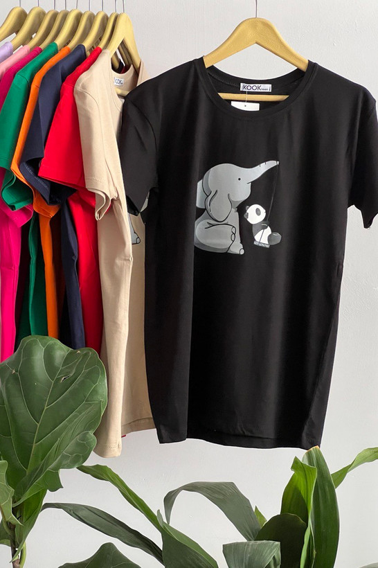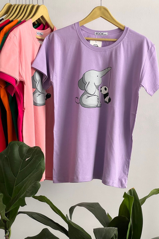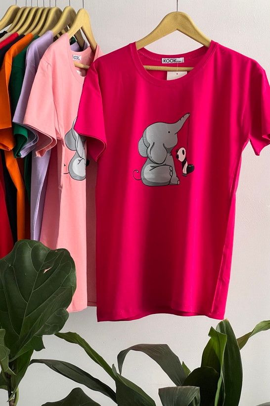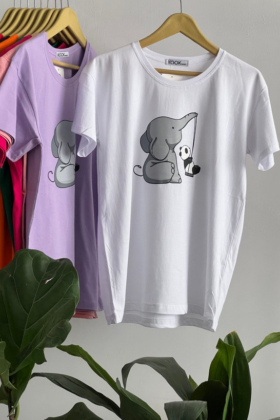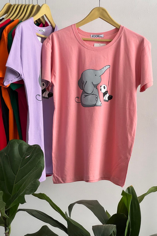 تیشرت زنانه برند کوک مدل فیل و پاندا کد ۱۰۷۱۵