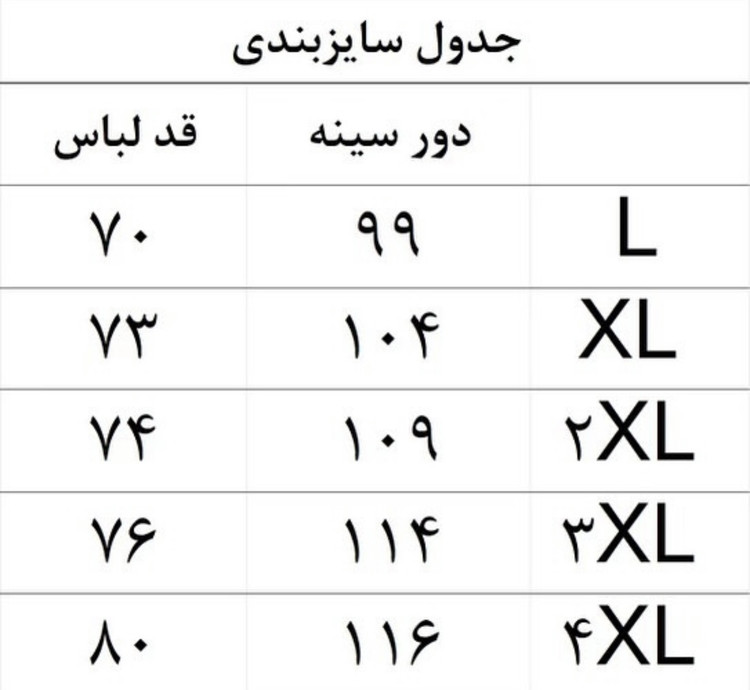 جدول سایز بندی در آخرین تصویر