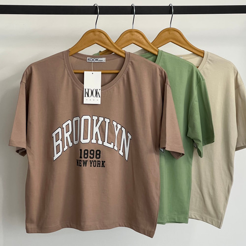 کراپ تیشرت زنانه طرح بروکلین برند کوک کد ۱۰۸۳۸