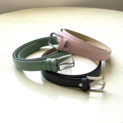 کمربند چرم زنانه ظریف زبانه دار دور دوخت عرض 2 سانتیمتری کد ۱۳۰06